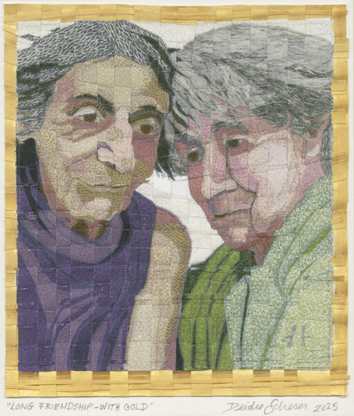 “Sisters, Sitting”, my thread-on-fabric work, is now in the collection of the Rhode Island School of Design Museum at 20 N. Main Street in Providence, RI. Created in honor of Hildegard Bachert and Edith Schnabel, this double portrait was recently donated by Dorothy Kerzner Lipsky.