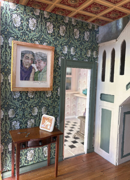 My woven paper version of “Long Friendship” is featured in the stunning Victorian Dollhouse in the window of MGFA in downtown Brattleboro. Including the frame, this tiny piece measures 2.75 x 2.5 inches. Visit for more information about: Brattleboro Festival of Miniatures. Several of my small works are also included in MGFA’s group exhibition, Small Works.